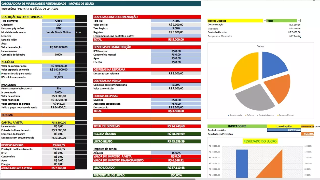 • Calcular se o desconto compensa, considerando reforma, dívidas e valor de venda ou aluguel.